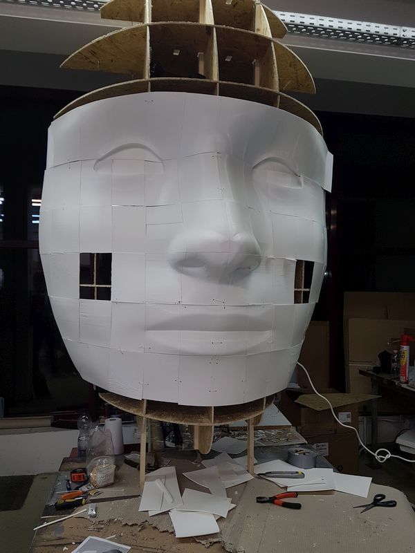 To create these otherworldly visuals within the confines of a worldly budget, one must look toward a special solution. Luckily, Craftbot is at your service to save the day once again! The costumes and body extensions, based purely upon their dimensions, were the easier part -now let's step it up a notch and take a look at that 2 meter high human face!