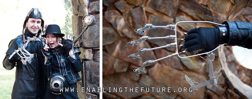 The e-NABLE movement started randomly in the United States when Ivan and Jen Owen created a spectacular costume for a steampunk event. Part of the costume included an operable robotic hand with hooked fingers. The giant metal hand turned out to be a huge success at the event that Ivan created a short YouTube video to showcase their creation to the world.