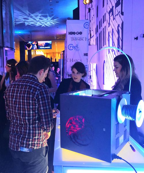 Winter has arrived to Budapest. The dragons and the Iron Throne from the well-known series were printed for the premiere with the Hungarian 3D printer developed by Craftbot. The 3D printed figures, coins and bookmarks with the Game of Thrones family crest were given away on the premiere event organised by HBO GO. The Game of Thrones premiere was not the first collaboration with a super production in the history of Craftbot.