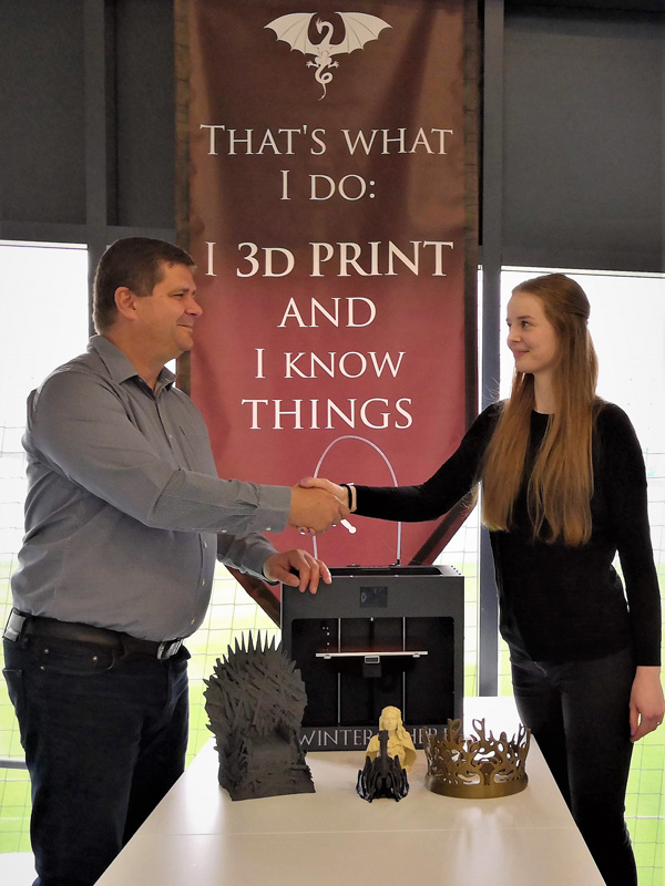 Closing our GOT giveaway social campaign, we have met our winners personally, and handed over the GOT designed Craftbot Plus to its new owner, Izabella, who has never tried 3D printing before. She is a very big fan of the series, we hope she also will love 3D printing.