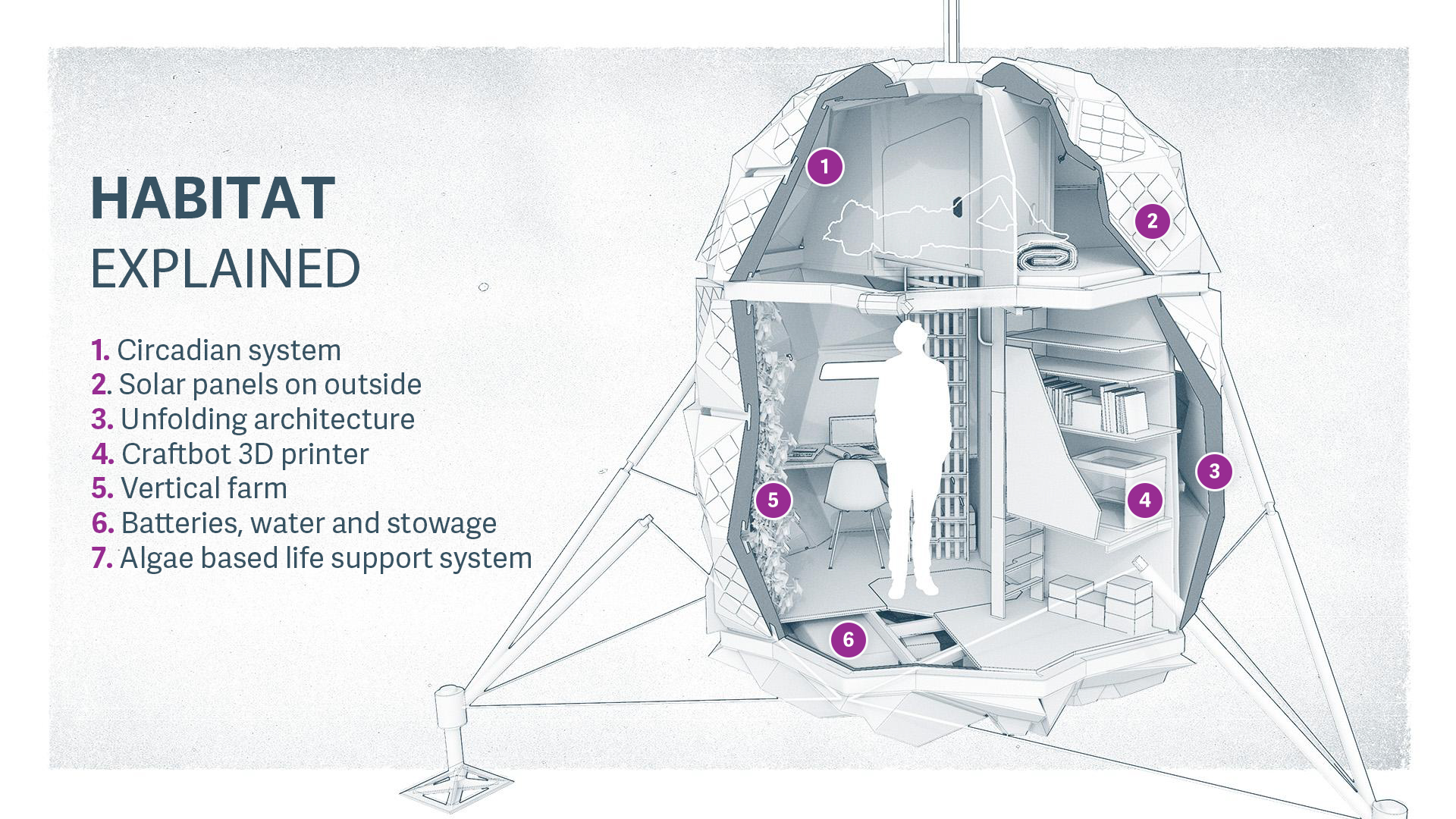 Their innovative idea was to create a solar-powered living habitat to help non-astronauts survive the harsh conditions of the moon, and further allow them to thrive by adding an element of ‘cosiness’ (a Danish word known as hygge) to the internal living space.