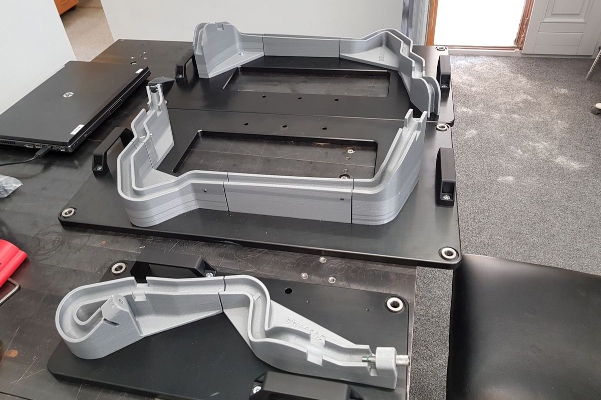 This four-piece inspection template is designed to test the shape and length of automotive components such as how rubber tubes bent at different angles. Length tolerances are marked separately on the printed model during design. Previously, these templates were made from POMM, but thanks to 3D printing, 40% weight reduction and 3 weeks less lead time have been achieved. This offers a more cost-effective solution for both the manufacturing company and the customers. In addition, they are also able to produce shapes that are required, but could not have been manufactured with the previous technology.