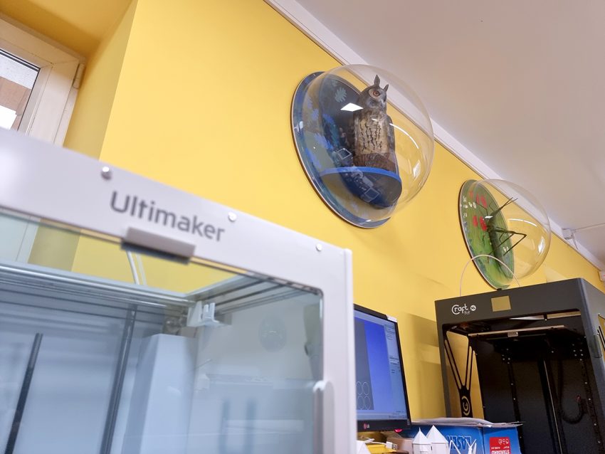 PLA is used to print various creatures, insects, fish, birds and mammals. If necessary, models are cut and oriented before production, taking into account the capabilities of 3D printing. A fleet of four Craftbots is responsible for the bulk of the production jobs, while the Ultimaker S3 printer is used to print smaller models requiring removable supports.
