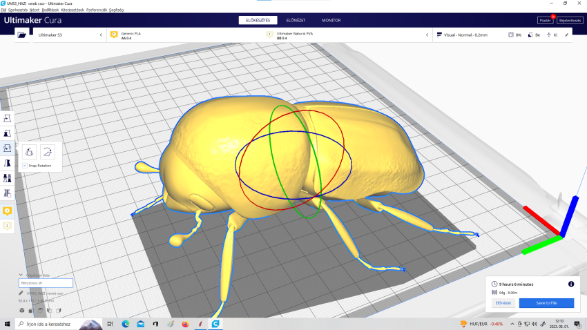 Their largest model to date was a 1 metre tall stag beetle, which took 220 hours and 1500 metres of filament to print, but they have plenty of other gigantic projects in their portfolio. They are currently working on realistic sculptures of a wide range of species, from mountain flowers and mushrooms to butterflies and other insects, fish and vipers, commissioned by the Satu Mare County Museum. And as part of the exhibition accompanying the Ipolytarnóc fossil remains, they have undertaken the creation of a 13×2 metre three-dimensional wall that will depict animals that lived 18 million years ago in a peaceful moment before a volcanic eruption.