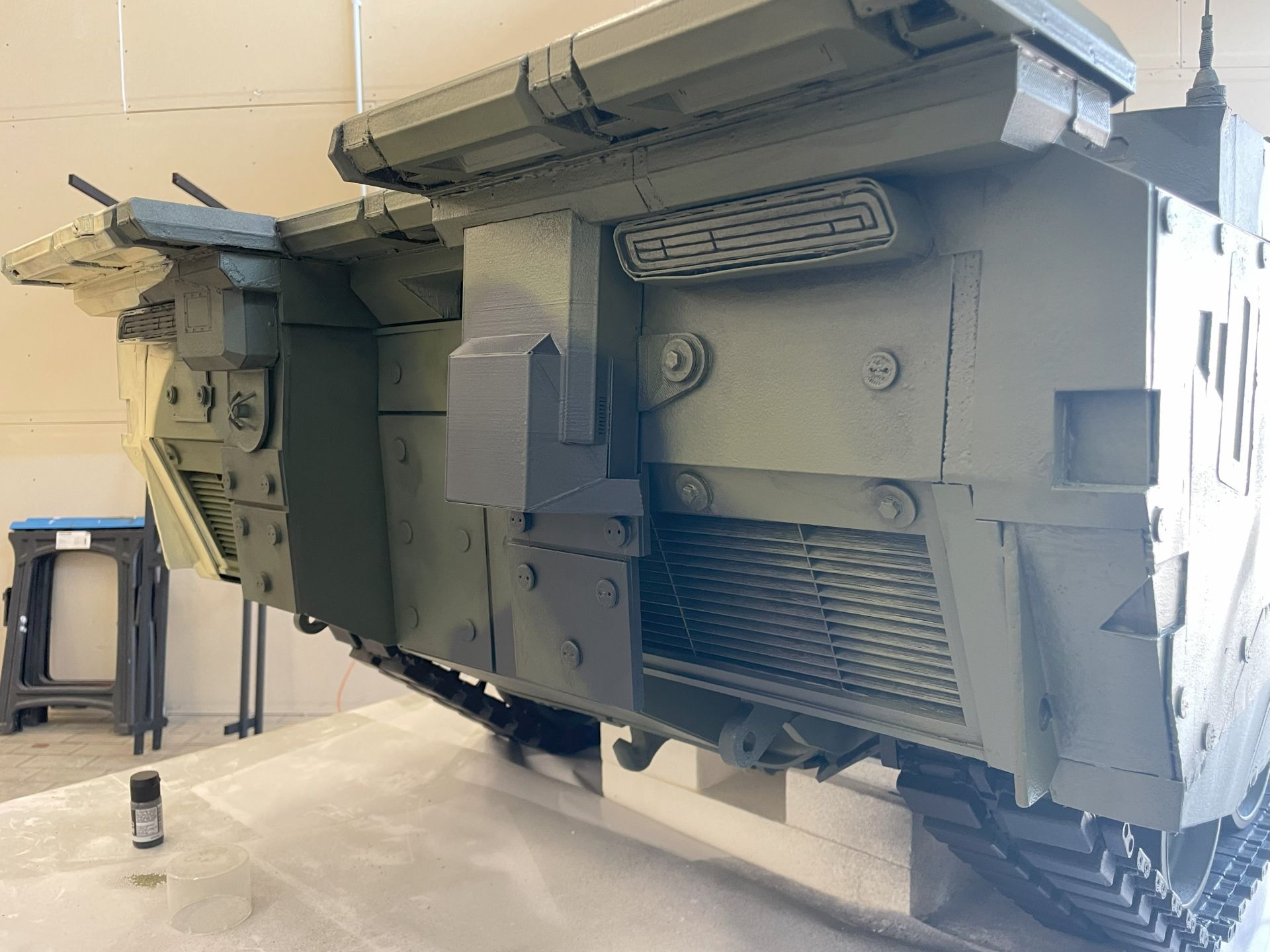 The prints are made from light gray PLA because any errors or irregularities are most visible in this color and material. Once the 3D printing process is done, the guys glue them together, polish and smooth out the parts and then the paint job is what makes the product look realistic. After the product is finished, it is usually another team’s job to pick up the result and build it into the movie set.