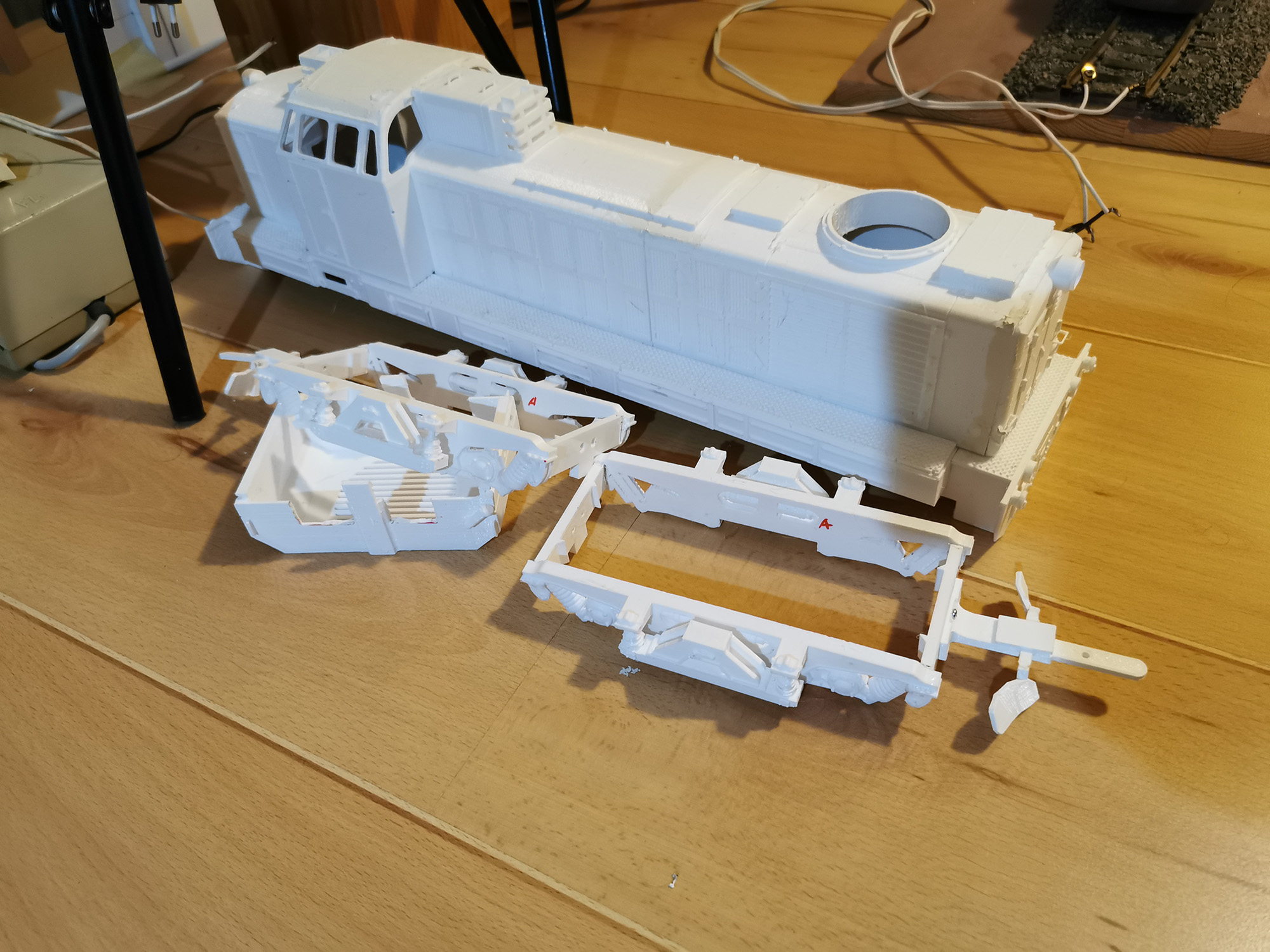 All 3 printers are used to print the necessary parts – the smaller items take about an hour to print, but some larger ones like a locomotive body can take up to 25 hours, that’s why having more printers come in handy.