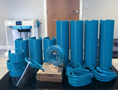 Craftbot have provided 6 IDEX 3D printers to create face shields for care homes and local GPs, dentists, pharmacists and local shop owners. So far, they have been producing 1200 units per week themselves, and have provided 800 units to other 3D printer hobbyists. They have also purchased 200 KN95 masks to give out locally with the shields.