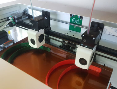 We also cooperated with Óbudai Egyetem, working and designing on a special ventilator known as the "multiple ventilator" which allows several patients to benefit from it thus maximizing the use on one ventilator to support several critically ill patients. The design team used the Craftbot Flow IDEX to print the prototypes.