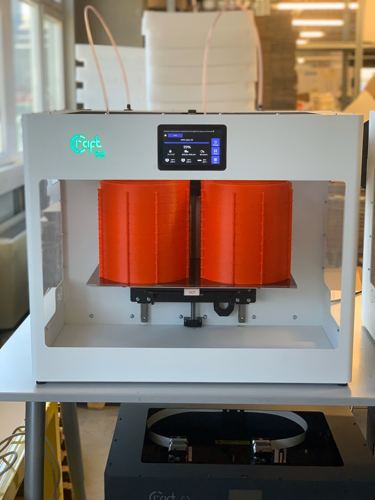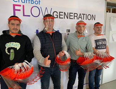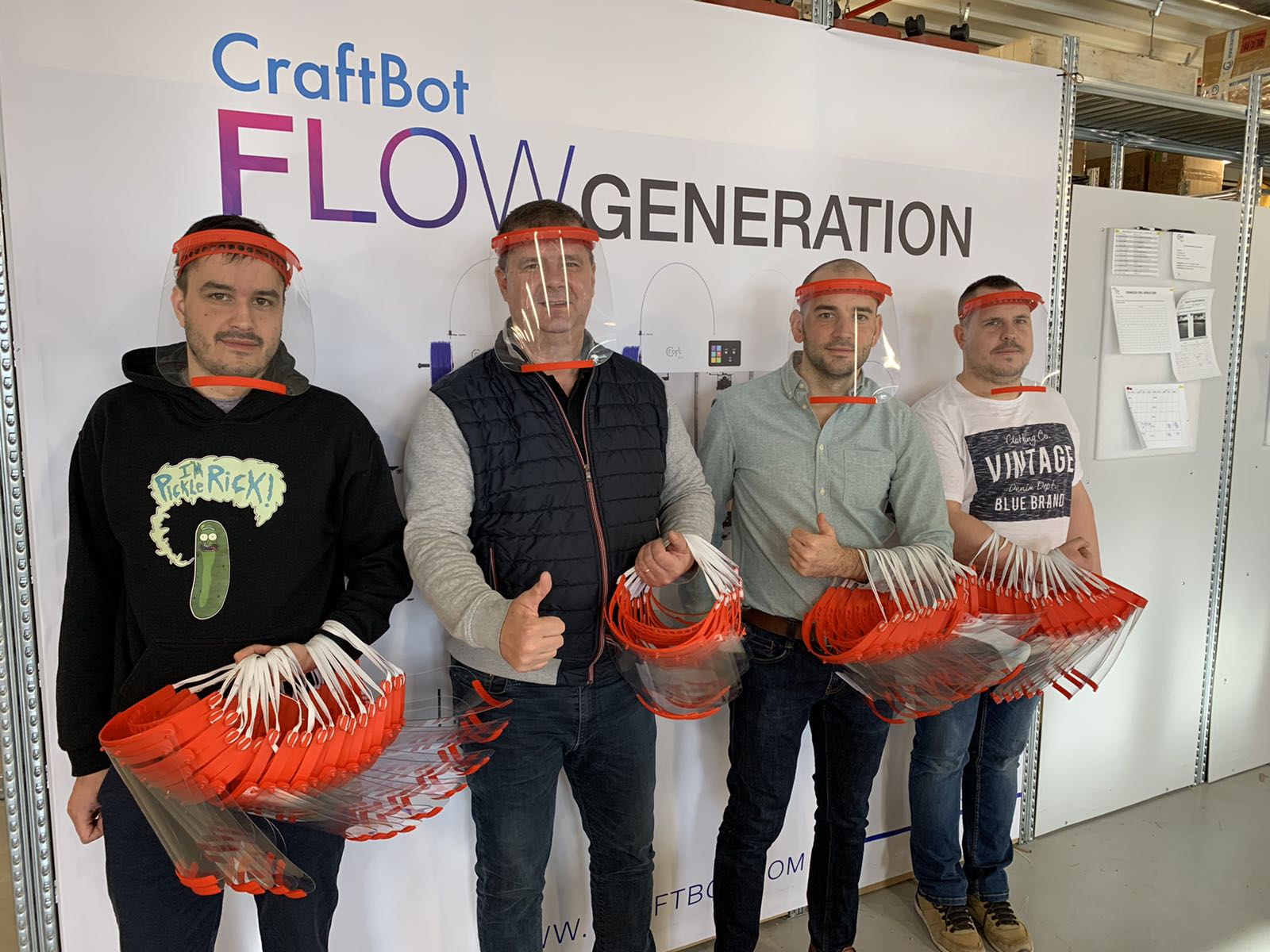 • 3dk.berlin has and continues to manufacture face shields using the Craftbots. 3dK has already given away 5000 face shields and 50 spools of filaments to Johanniter hospitals. Their RLM consists of Craftbot XL, Craftbot Plus, Craftbot 3 and a Craftbot FLOW printer. The machines are running 24/7. 3dK Berlin continues to produce thousands of shields monthly by supporting the local maker space xHAIN who remains committed to the COVID fight.