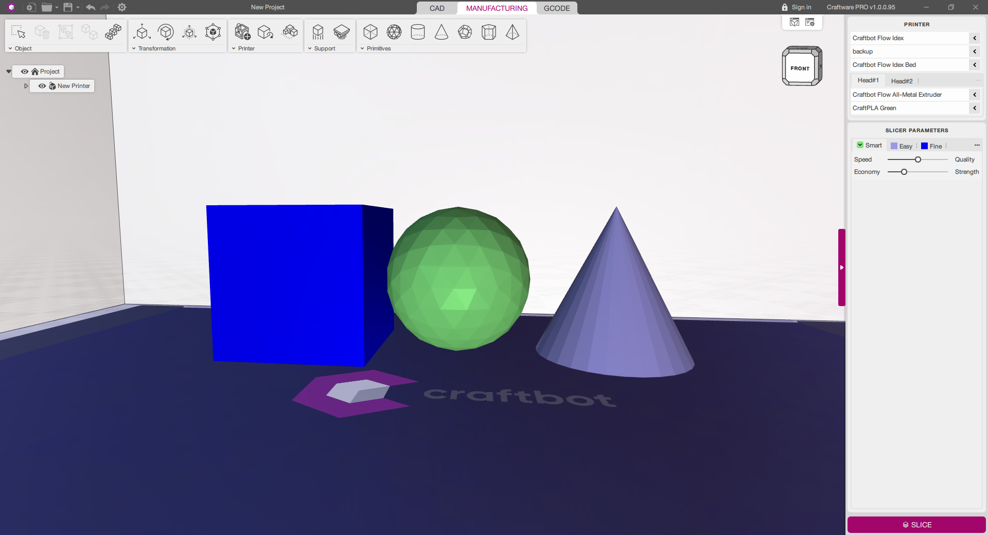 - Slicer profile selector added to the Slicer Panel